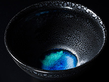 釉薬にガラス成分を混ぜることで、光の加減によって青から緑へと変化する神秘的な輝きを楽しめます。